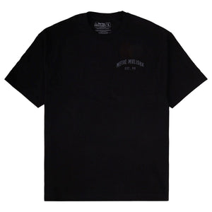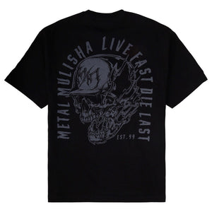 Metal Mulisha Smokin T-Shirt. Small front hit and large hand-drawn smokin M/M skull and life fast die last art.